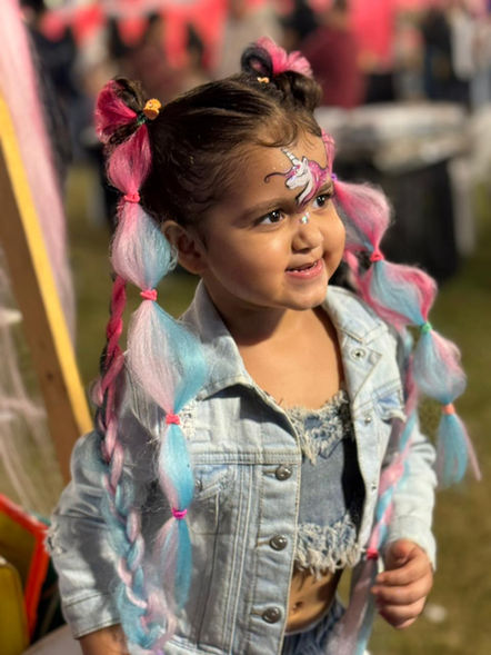 Add sparkle and style with our creative hair art services. From colorful bubble braids and extensions to glitter styling and festival hair looks, we create fun hairstyles perfect for kids' parties, weddings, and events.